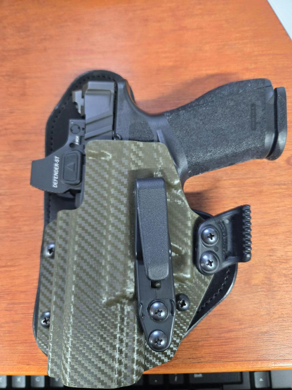 That's why we only make hybrid holsters. You get the positive retention of Kydex and the body-forming goodness of Amish leather. Get it cut for your red dot optic too!