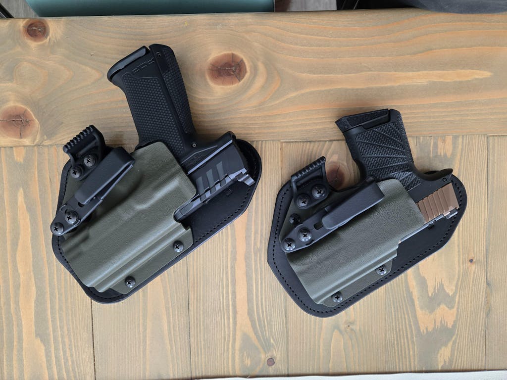 Merges the retention of Kydex with the comfort of leather for all-day carry